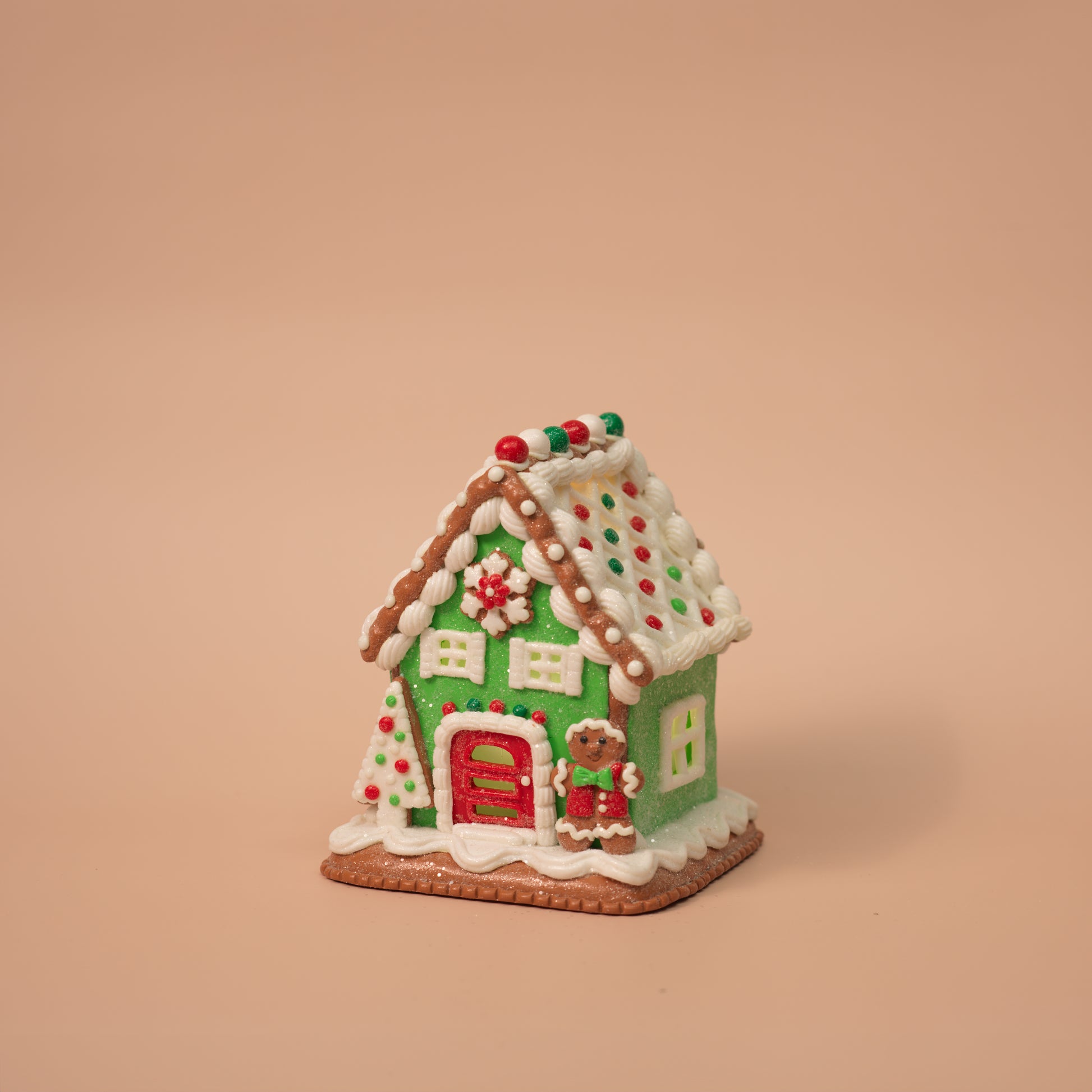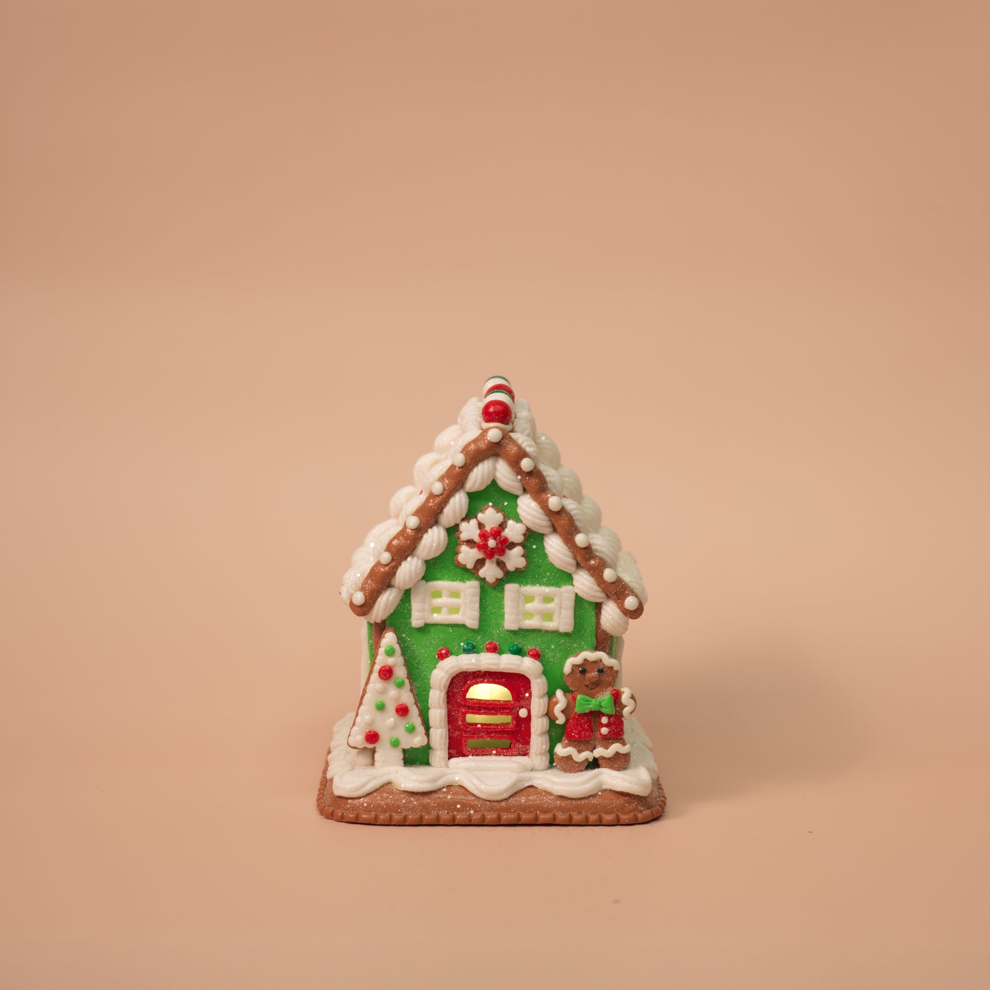 This merry trio of gingerbread houses glows with Christmas joy! Each clay dough house is decked out in festive details—from Santa and snowmen to wreaths and gumdrops. With warm LED lights inside, they bring cozy magic to any corner of your home.