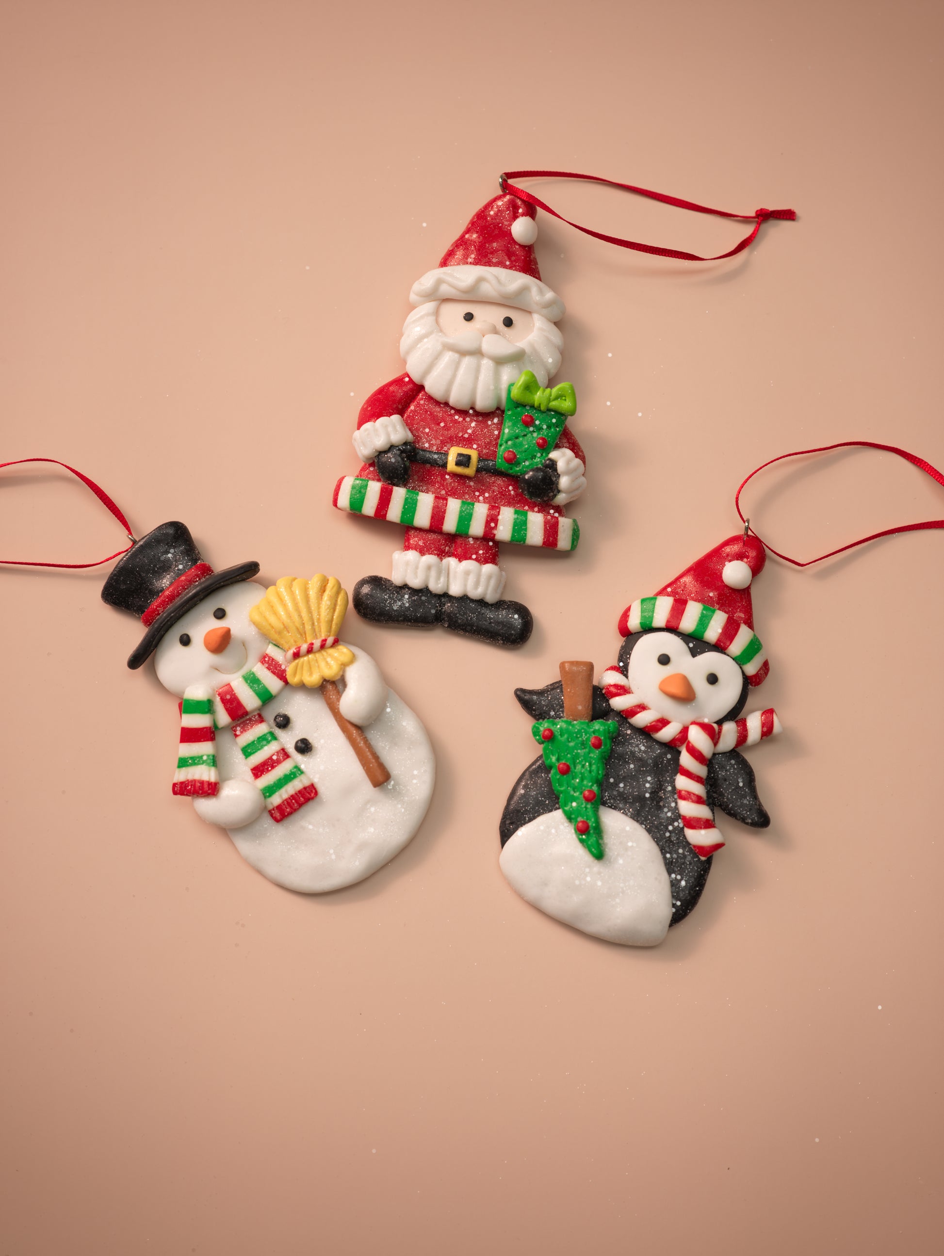Create a classic and heartwarming holiday look with this charming set of character ornaments! Including Santa with gift, snowman with broom, and penguin with Christmas tree, these beloved holiday figures are full of personality and cheer. Great for families, themed trees, or festive gifting!